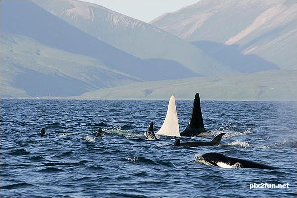 دانشمندان درحالی که صوت شناختی و تعاملی میان نهنگها و دلفینها در جزایر کامند در قسمت شمالی اقیانوس آرام را بررسی می کردند به یک بالچه نهنگ سفید که دو متر طول داشت رسیدند و متوجه شدند که این بالچه متعلق به یک نهنگ قاتل سفید رنگ است، دانشمندان آن را کوه یخ نامگذاری کردند. گفته می شود که این نهنگ سفید در یک گروه خانواده متشکل از 12 نهنگ قاتل دیگر در آبهای شمال غربی اقیانوس آرام به دور از سواحل آسیای شرقی روسیه زندگی می کند.