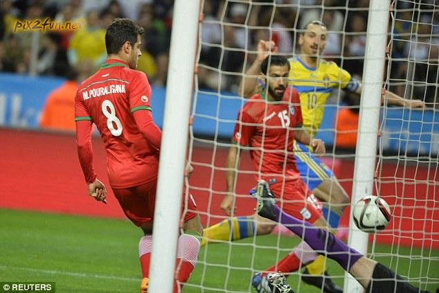 ایران در بازی دوم دوستانه خود با یک تغییر به نسبت بازی قبلی به میدان رفت و پورعلی گنجی باز هم به قلب دفاع بازگشت تا به همراه سیدجلال حسینی بتوانند جلوی زلاتان بایستند اما تا 21 این اتفاق اصلا نیفتاد و سوئدی های سراپا حمله تا این دقیقه توانستند به رهبری ابراهیموویچ و با استفاده از اشتباه مدافعان ایران دو بار دروازه ایران را باز کنند اما از این دقیقه که گویی ایرانی ها دیگر ترسی از گل خوردن نداشتند، کمی خود را به زمین سوئد رساندندو در اولین حمله جدی خود موفق به دریافت یک ضربه پنالتی شدند که گل اول تیم ملی را رقم زد.
