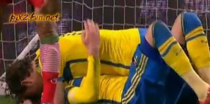 1 – 0 (سوئد): پاسکاری سوئدی ها پشت محوطه جریمه ایران از زلاتان شروع شد، توپ را به سمت چپ دفاعی ایران و سانتر بازیکن این تیم را زلاتان روی سر مدافعان ایران، به گل اول این تیم تبدیل کرد. تلاش علیرضا حقیقی برای رسیدن به توپ و جلوگیری از گل شدن آن با سر خوردن و جا ماندن وی همراه شد.