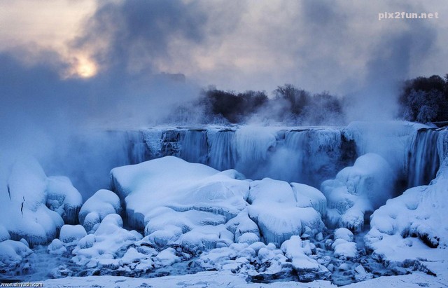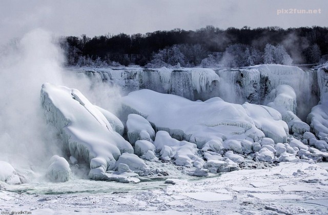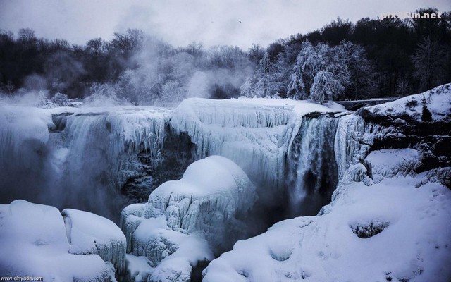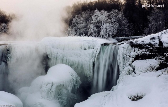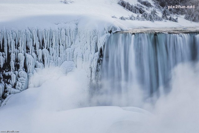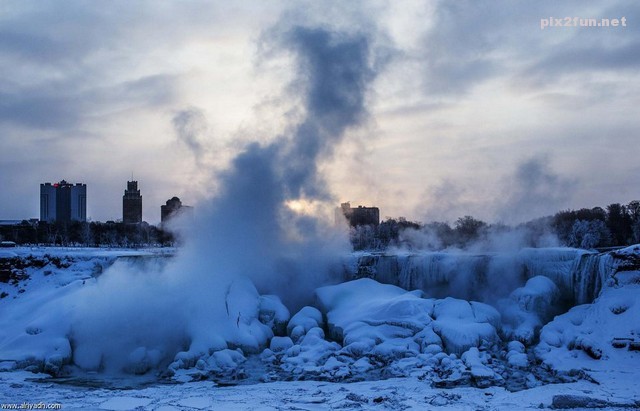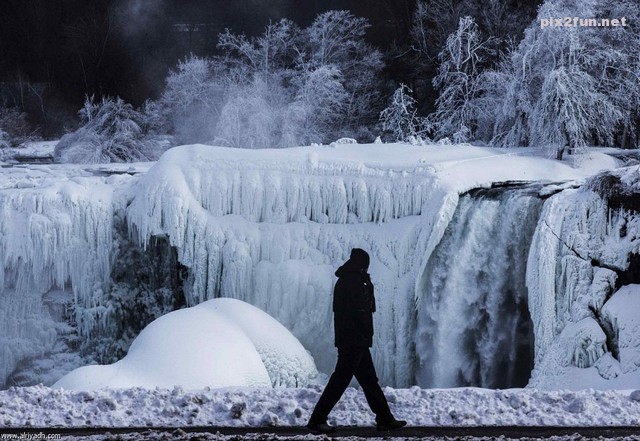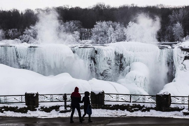 آبشار نیاگارا در مرز آمریکا و کانادا یخ زد.