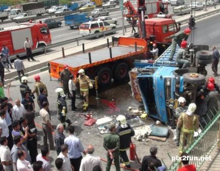 ستاد فرماندهی آتشنشانی ساعت11:35 دقیقه با دریافت خبر سقوط خاور و گرفتار شدن راننده آن بلافاصله آتشنشانان ایستگاه 21وگروه نجات2وجرثقیل 15تن را به محل حادثه در بزرگراه آزادگان، مسیر شرق به غرب اعزام كرد.